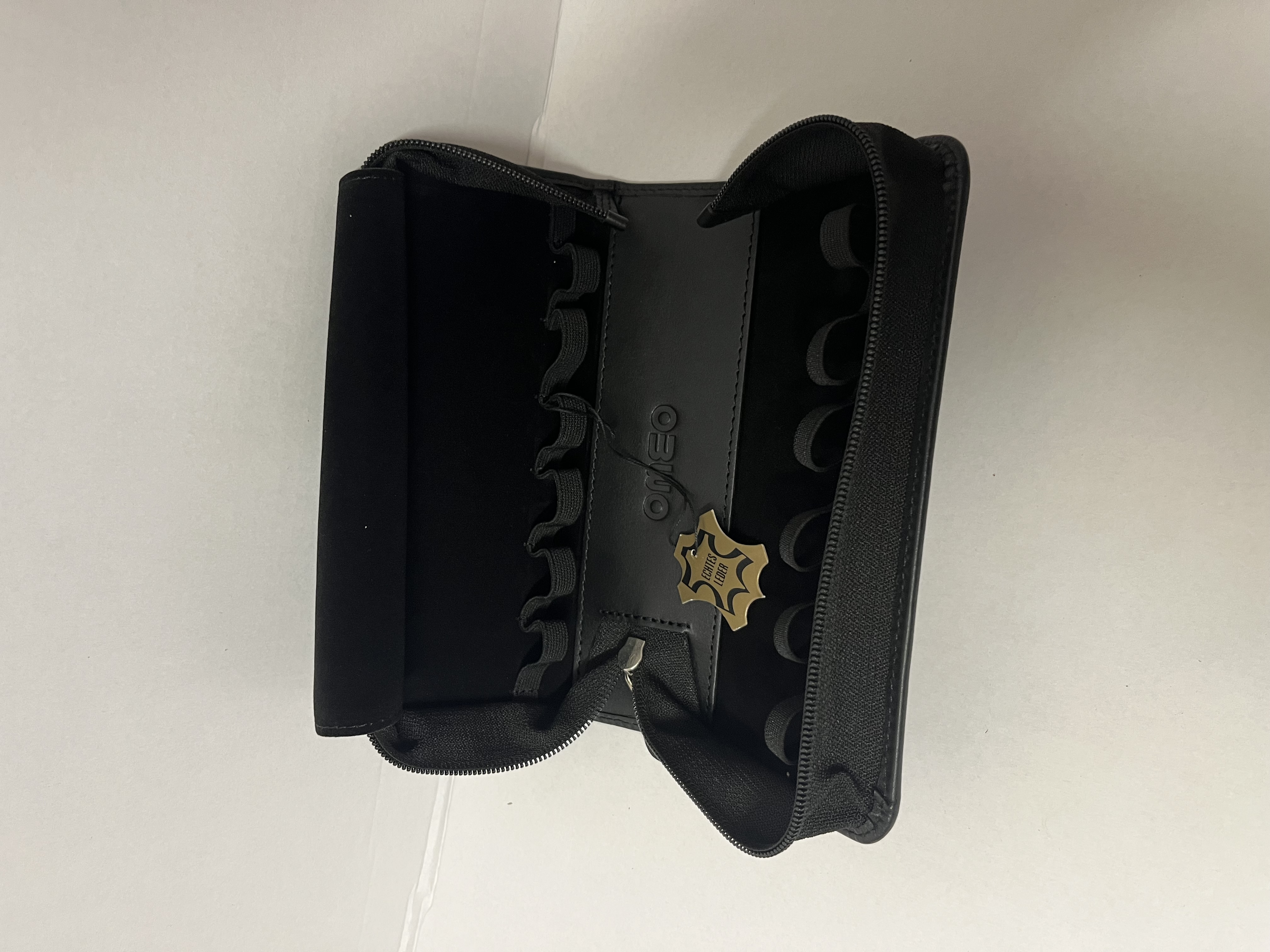 Edles OMEO ® Rindleder-Etui in Schwarz als Hausapotheke für 12 Öle, DHU/Spagyra Flaschen, Essenzen oder Flüssigkeiten à 10g oder 10ml. Flaschengröße Ø bis 2,5 cm x 7 cm.
