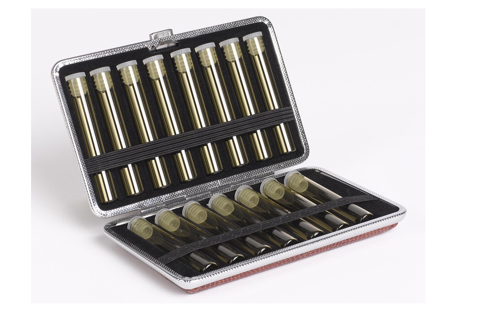 Metara - edle Taschenapotheke Homöopathie für 12 Mittel. Ein peppiges und günstiges Etui für homöopathische Mittel als Mini- Reiseapotheke für unterwegs in edler Leder/Metall Optik für 12 Flachbodengläser (1,5g).