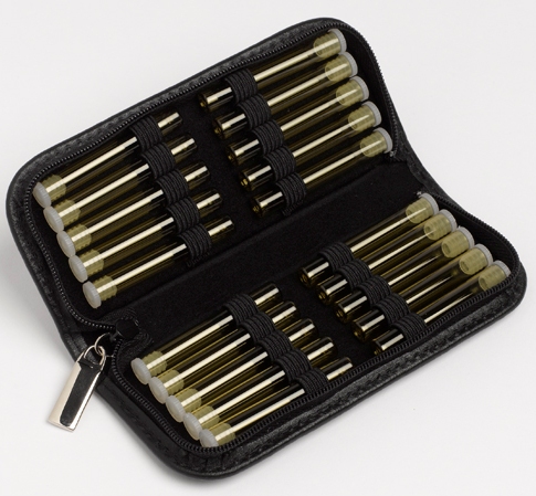 Das Etui enthält keine Gläser. Passende Flachbodengläser (bis 1,5g) erhalten Sie in unserem Sortiment unter Gläser und Reaktionsgefäße.