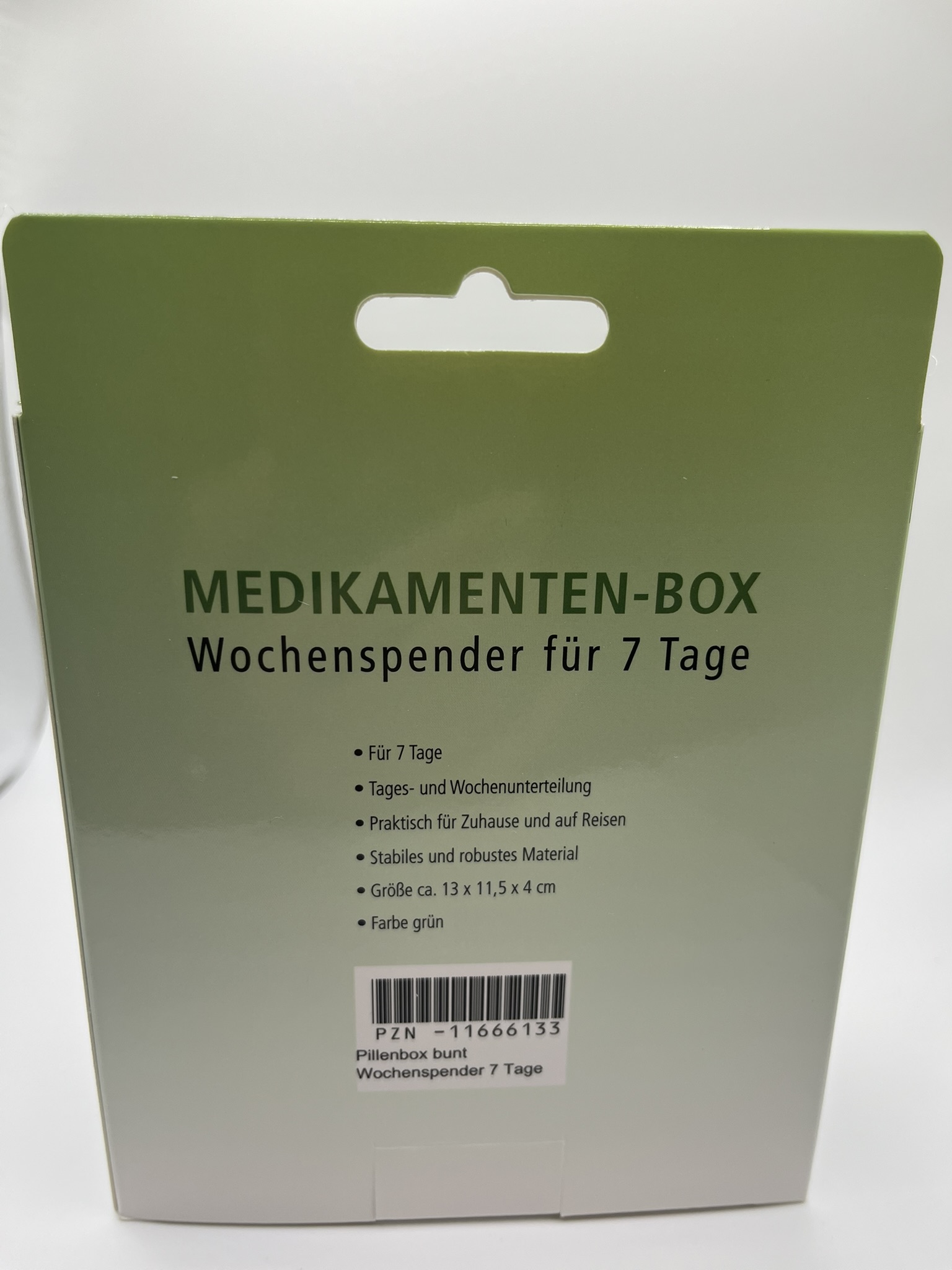 Diese Pillenbox als Wochenspender für 7 Tage, mit Tagesboxen mit 4 Fächern, unterstützt die regelmäßige Einnahme der Medikamente.