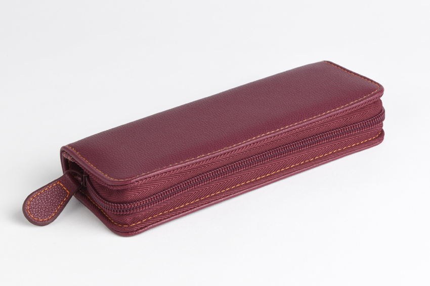 Der Kunstleder Klassiker zum günstigen Preis. Das Kunstleder sieht besonders natürlich aus und fühlt sich sehr gut an. Die feinzackigen, gängigen Reißverschlüsse mit trendigem Kunstlederzipper sind farblich auf das Etui angepasst. Das hochwertige Veloursinnenfutter in Orange gibt eine leichte Polsterung und schützt den Inhalt in den sicheren Schlaufen. Ohne Gläser.